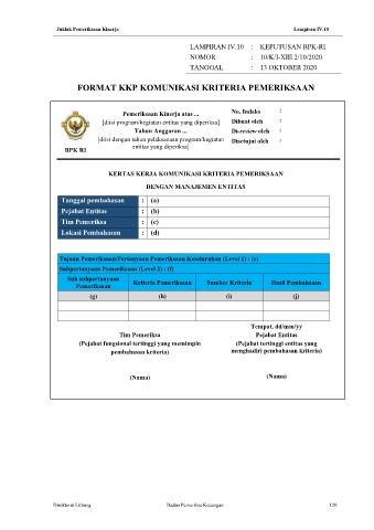 Lampiran IV.10 Format KKP Komunikasi Kriteria LAMPIRAN IV.10 : KEPUTUSAN BPK-RI