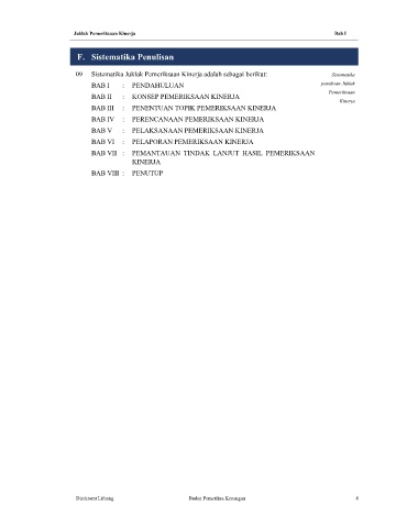09 Sistematika Juklak Pemeriksaan Kinerja adalah sebagai berikut: Sistematika
