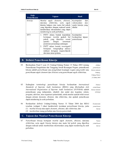 05 Sedangkan terminologi pemeriksaan kinerja berdasarkan International Definisi