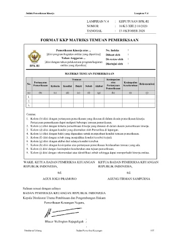 Lampiran V.4 Format KKP Matriks Temuan LAMPIRAN V.4 : KEPUTUSAN BPK-RI