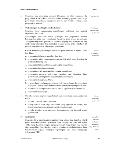 57 Contoh penerapan pertimbangan profesional pada pemeriksaan kinerja, antara Contoh
