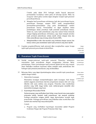 pertimbangan dalam penentuan topik potensial pemeriksaan kinerja.