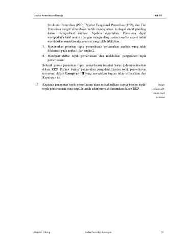 17 Kegiatan penentuan topik pemeriksaan akan menghasilkan output berupa topik- Output