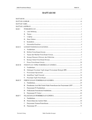 Juklak Pemeriksaan Kinerja Daftar Isi