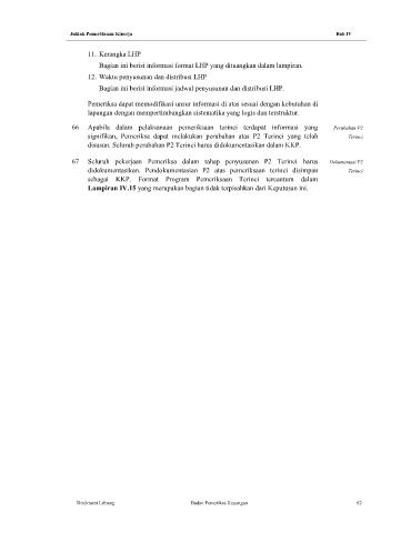 67 Seluruh pekerjaan Pemeriksa dalam tahap penyusunan P2 Terinci harus Dokumentasi P2