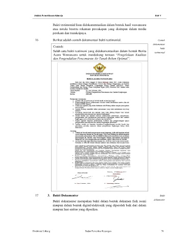 Bukti testimonial/lisan didokumentasikan dalam bentuk hasil wawancara