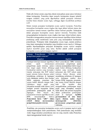 dalam penyajian kesimpulan secara implicit (tersirat), Pemeriksa tidak