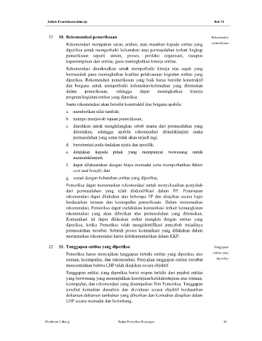 Rekomendasi dimaksudkan untuk memperbaiki kinerja atas aspek yang