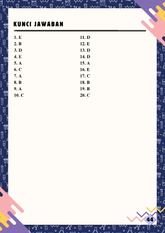 KUNCI JAWABAN 1. E 11. D 2. B 12. E 3. D 13. D 4. E 14. D 5. A 15. A 6. C 16. E 7. A 17. C 8. B 18. B 9. A 19. B 10. C 20. C 44