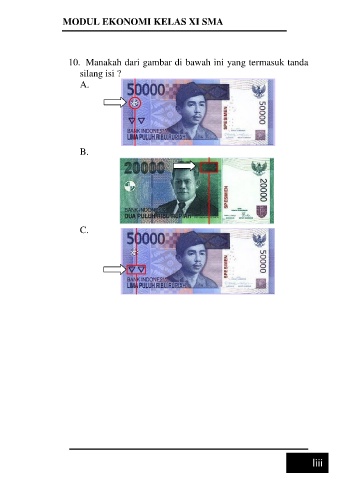 MODUL EKONOMI KELAS XI SMA 10. Manakah dari gambar di bawah ini yang termasuk tanda silang isi ? A. B. C. liii