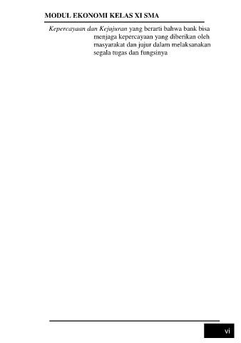 MODUL EKONOMI KELAS XI SMA Kepercayaan dan Kejujuran yang berarti bahwa bank bisa menjaga kepercayaan yang diberikan oleh masyarakat dan jujur dalam melaksanakan segala tugas dan fungsinya vi
