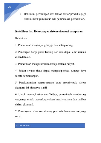 Kelebihan dan Kekurangan sistem ekonomi campuran: