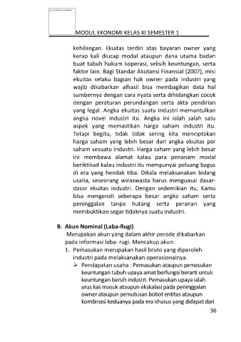 kehilangan. Ekuitas terdiri atas bayaran owner yang
