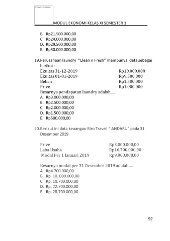 20. Berikut ini data keuangan Biro Travel “ ANDARU” pada 31