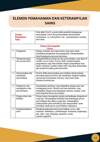 ELEMEN PEMAHAMAN DAN KETERAMPILAN SAINS vi
