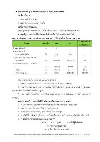 ผลการดำเนินงานตามแผนการดำเนินงานของกลุ่มเกษตรกร ปีบัญชี เดือน มีนาคม พ.ศ. 2564