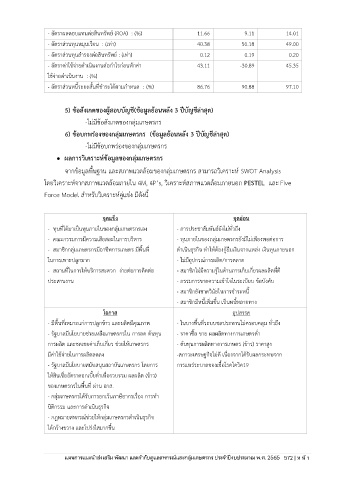 จากข้อมูลพื้นฐาน และสภาพแวดล้อมของกลุ่มเกษตรกร สามารถวิเคราะห์ SWOT Analysis