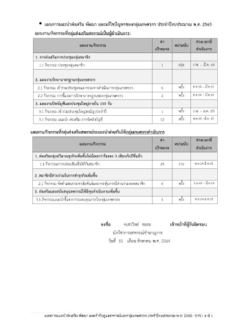 แผนงาน/กิจกรรมทกลุ่มส่งเสริมสหกรณ์จะแนะนำส่งเสริมใหกลุ่มเกษตรกรดำเนินการ