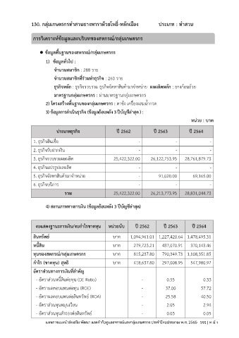 งบแสดงฐานะการเงิน/งบกำไรขาดทุน หน่วยนับ ปี 2562 ปี 2563 ปี 2564
