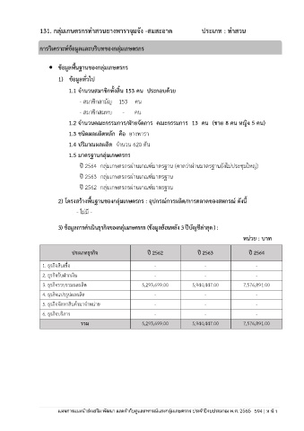 3) ข้อมูลการดำเนินธุรกิจของกลุ่มเกษตรกร (ข้อมูลย้อนหลัง 3 ปีบัญชีล่าสุด ) :