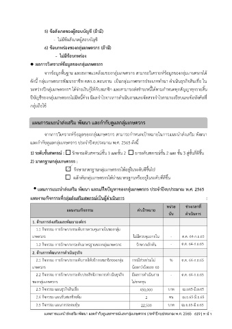 แผนการแนะนำส่งเสริม พัฒนา และแก้ไขปัญหาของกลุ่มเกษตรกร ประจำปีงบประมาณ พ.ศ. 2565