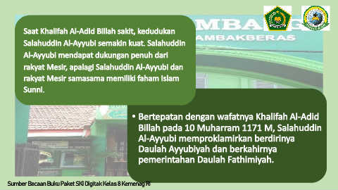 • Bertepatan dengan wafatnya Khalifah Al-Adid