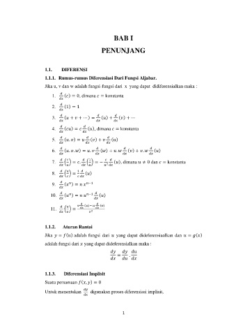 1.1.1. Rumus-rumus Diferensiasi Dari Fungsi Aljabar.