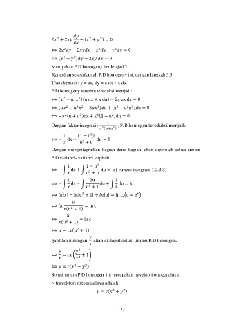 Dengan faktor integrasi : 1 , P. D homogen tereduksi menjadi:
