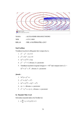 5. Tentukan trayektori isogonal dengan w = 45 dari rumpun kurva ( −