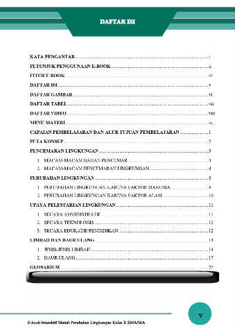 DAFTAR ISI v E-book Interaktif Materi Perubahan Lingkungan Kelas X SMA/MA