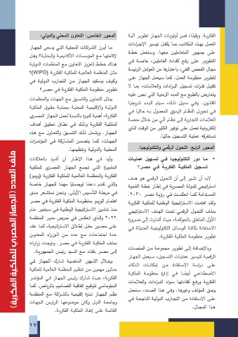 ملف العدد ( الجهاز المصري للملكية الفكرية) المحور الخامس :التعاون المحلي والدولي: الفكريـة .ويقيًنـا ،فمـن أولويـات الجهـاز تطويـر آليـة