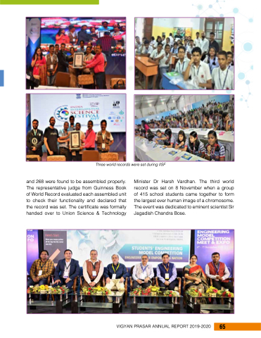 Minister Dr Harsh Vardhan. The third world record was set on 8 November when a group of 415 school students came together to form the largest ever human image of a chromosome. The event was dedicated to eminent scientist Sir Jagadish Chandra Bose.