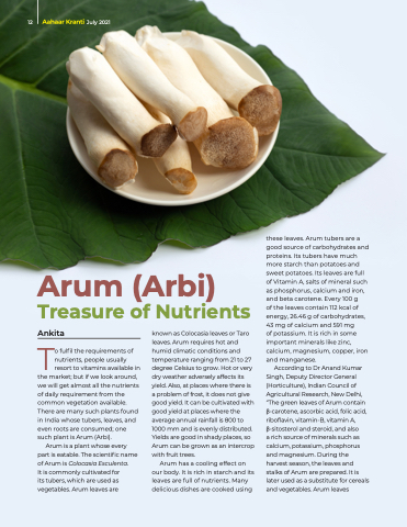 To fulfil the requirements of nutrients, people usually resort to vitamins available in the market; but if we look around, we will get almost all the nutrients of daily requirement from the common vegetation available. There are many such plants found in India whose tubers, leaves, and even roots are consumed; one such plant is Arum (Arbi).