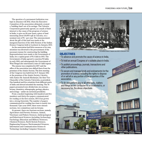 at the premises of the Asiatic Society, Calcutta, with Justice Sir Asutosh Mookerjee, the then Vice Chancellor of the Calcutta University, as president. One hundred and five scientists from different parts of India and abroad attended the meeting. The 35 papers presented were divided into six sections – botany, chemistry, ethnography, geology, physics, and zoology – under six sectional presidents.