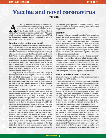 If we desire to develop a vaccine for the novel coronavirus, then we need to make our immune system familiar with the deadly intruder even before it gets a chance to break in. Our immune system, aware of the ways of criminal, can take appropriate and timely steps before heavy damage is done. If our immune system dithers in identifying the unfamiliar intruder and is slow to respond, the damage caused by the virus may even cost life. At the instant of infection, if the right types of antibodies can be secreted, without any time delay, the pathogen has no chance.