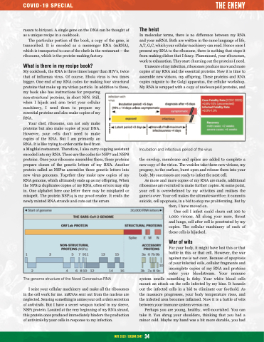 a Mughlai restaurant. Therefore, I also carry copying assistant encoded into my RNA. These are the codes for NSP7 and NSP8 proteins. Once your ribosome assembles them, these proteins prepare clones of the genetic letters of my RNA. Another protein called as NSP12 assembles these genetic letters into new virus genomes. Together they make new copies of my RNA genome, which ultimately ends up as my offspring. When the NPS12 duplicates copies of my RNA, often errors may slip in. One alphabet here one letter there may be misplaced or misspelt. The protein NSP14 is my proof-reader. It reads the newly minted RNA strands and cuts out the errors.