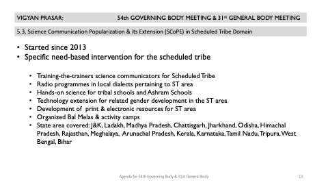 • Training-the-trainers science communicators for Scheduled Tribe