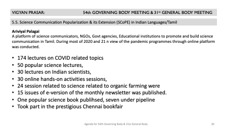 5.5. Science Communication Popularization & its Extension (SCoPE) in Indian Languages/Tamil