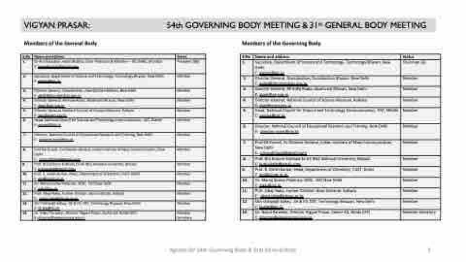 VIGYAN PRASAR: 54th GOVERNING BODY MEETING & 31st GENERAL BODY MEETING