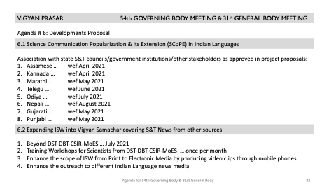 6.1 Science Communication Popularization & its Extension (SCoPE) in Indian Languages