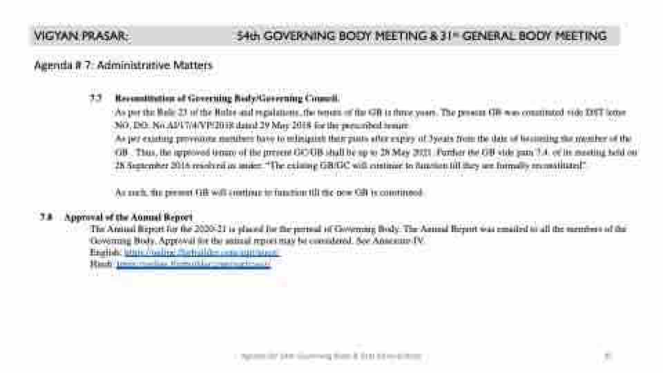 As per the Rule 23 of the Rules and regulations, the tenure of the GB is three years. The present GB was constituted vide DST letter NO. DO. No.AI/17/4/VP/2018 dated 29 May 2018 for the prescribed tenure.