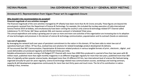 Annexure # 5: Representation from Vigyan Prasar wrt its suggested closure