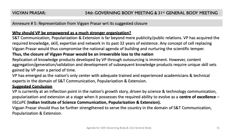Annexure # 5: Representation from Vigyan Prasar wrt its suggested closure