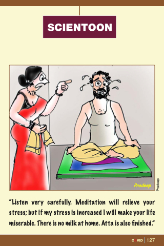 Pradeep “Listen very carefully Meditation will relieve your stress stress but if if my stress stress is increased I will make your life miserable There is is is is no milk at home Atta is is is is also finished ” COCVOIVDID|1|2070 Pradeep