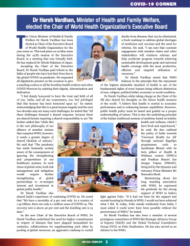 Dr Harsh Vardhan has also been a member of several prestigious committees of WHO like Strategic Advisory Group of Experts (SAGE) and the Global Technical Consultative Group (TCG) on Polio Eradication. He has also served as an Advisor to the WHO.