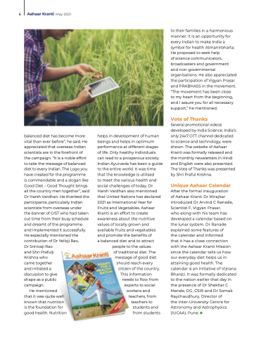 that it has a close connection with the Aahaar Kranti Mission since the calendar tells us how our everyday diet helps us in attaining good health. The calendar is an initiative of Vijnana Bharati. It was formally dedicated to the nation earlier that day in the presence of Dr Shekhar C Mande, DG, CSIR and Dr Somak Raychaudhury, Director of