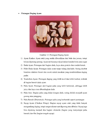 2) Dada Ayam: Potongan dari bagian dada, kaya akan protein dan rendah lemak.