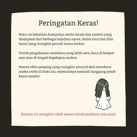 Buku ini berisikan kumpulan cerita seram dan misteri yang