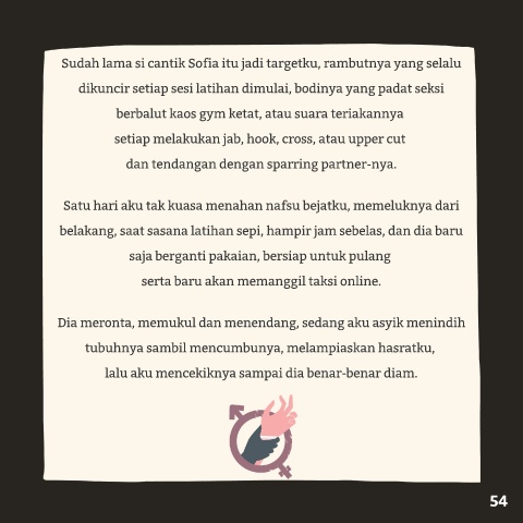 Dia meronta, memukul dan menendang, sedang aku asyik menindih
