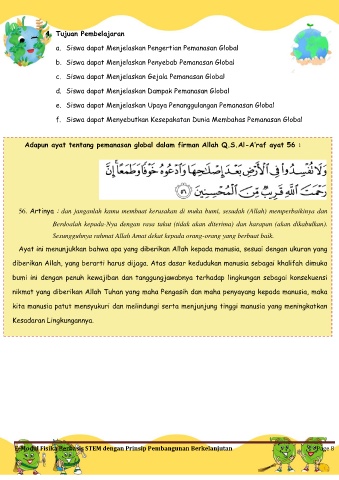 Adapun ayat tentang pemanasan global dalam firman Allah Q.S.Al-A‘raf ayat 56 :